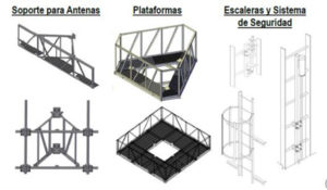 Guyed towers, small poles, antenna mounts, ladders and platforms